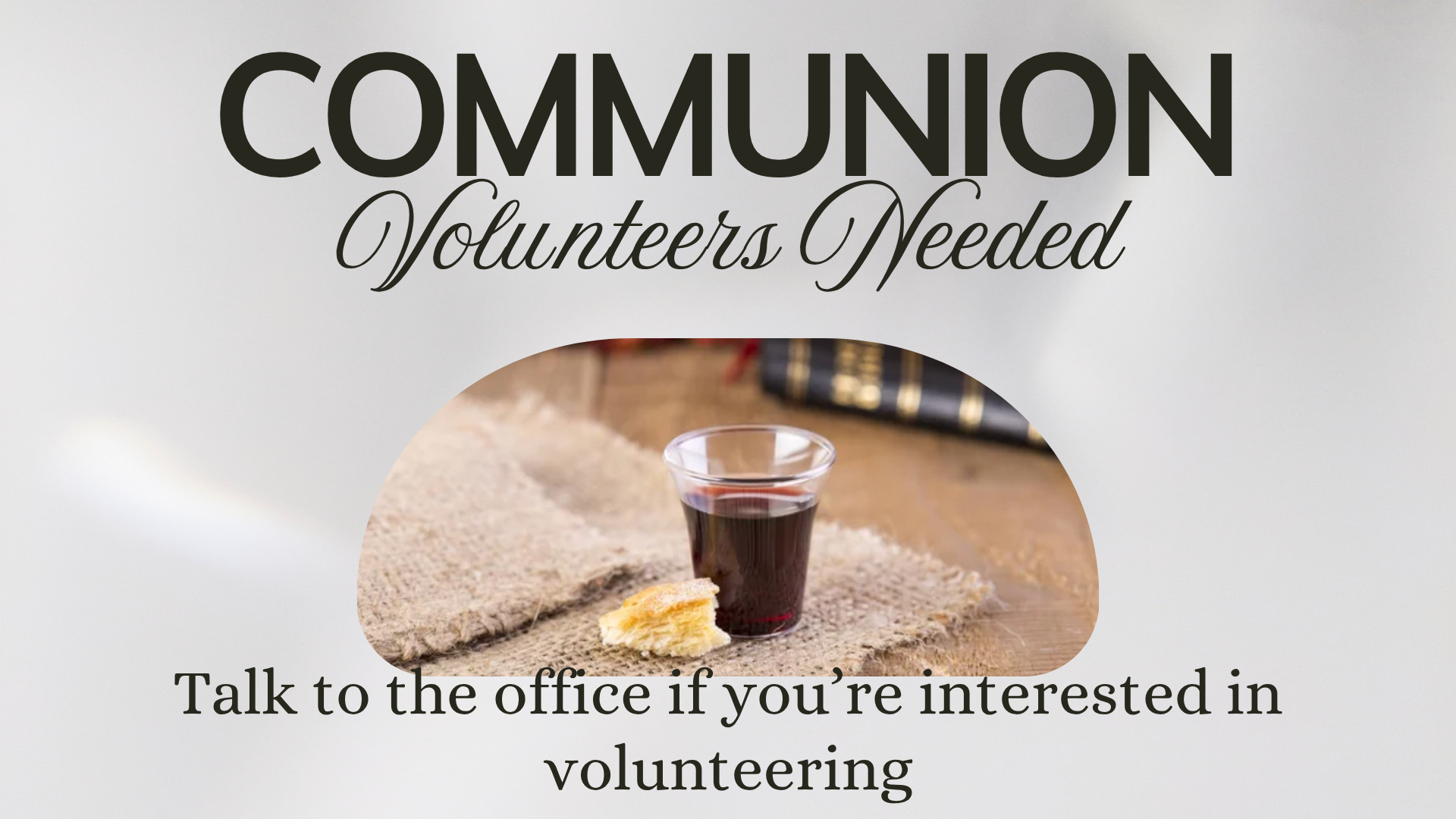 We are currently looking for volunteers to serve in the Communion ministry. If you feel called to help in these areas and be a blessing to our church family, we would love to have you! Please reach out to us Thank you for your willingness to serve.