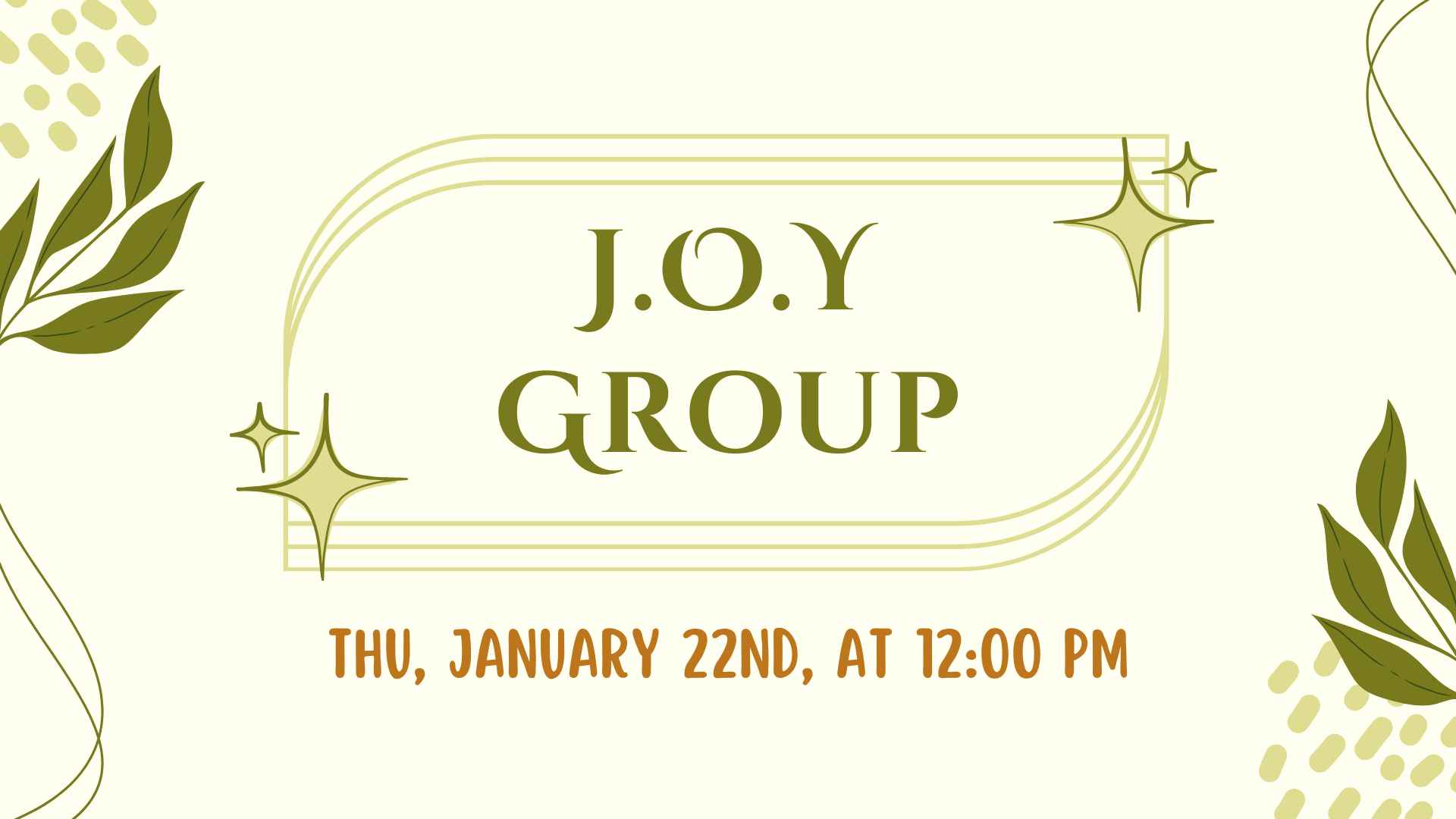 We’re excited to announce that the JOY Group will be holding its first event of the year on Thursday, January 22. All adults age 55 + and over are welcome to attend.