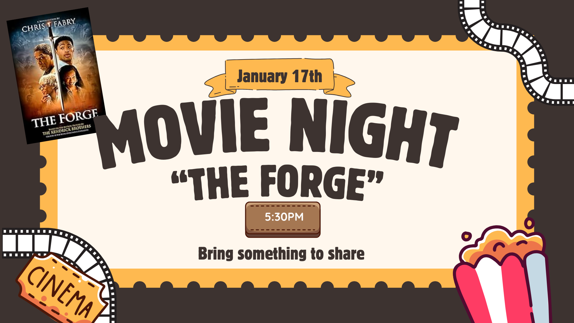 We’re excited to invite you to our first Movie Night of the year on Saturday, January 17. We’ll be showing The Forge by the Kendrick brothers. Come and enjoy a meaningful evening together. Everyone is welcome!